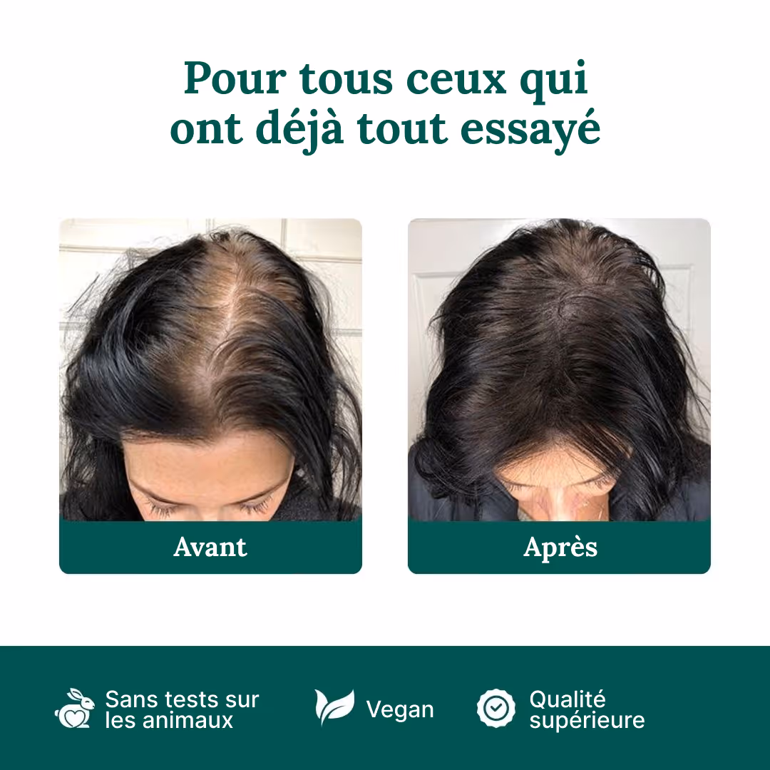 J'ai déjà remarqué une différence énorme après environ 2 mois ! Je suis tellement excitée. J'étais vraiment désespérée et pensais devoir m'habituer à mes cheveux clairsemés.